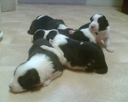Štěňátka se narodila 15.7.2007 u paní Šumberové v Boskovicích, celkem jich na svět přišlo 8, z toho se narodily 2 fenky a 6 pejsků.... Byl to Sářin 1. vrh a jedinný plánovaný vrh.